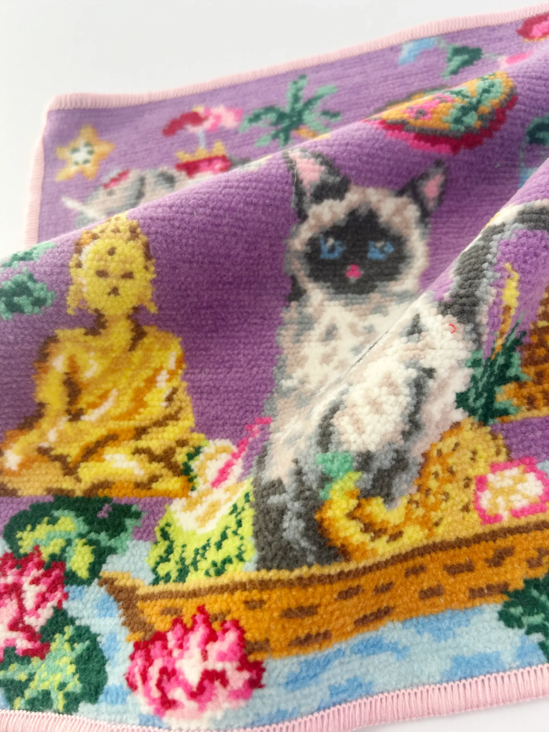 小舟に乗ってるブルーの瞳の神秘的なシャム